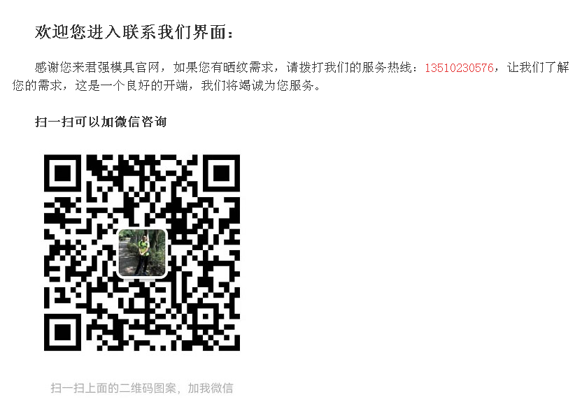 深圳市君强实业有限公司是一家专业从事模具晒纹,咬花,精加工企业。我们尊崇“诚信铸就品质,质量赢得市场”的企业精神,营造良好的服务环境,以全新的管理模式、放心的品质,合理的价格为生存的根本。我们始终坚持客户至上,携手新老客户一道共创美好的未来!...